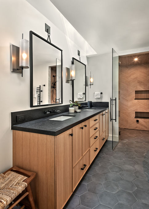 This stunning home, tucked into the rolling hills of Northern Sonoma County, is surrounded by lush vineyards and open sky. The house celebrates it's wide-open surroundings of pristine nature yet meets the elegance expected of a home in this world class location. We simplified the originally split-level home to primarily one level and vaulted the kitchen and primary bedroom ceiling to create a lofty feeling throughout the house. Stone walls and curated stone pathways weave through the home anchoring it in the region’s vernacular. The addition of a large covered deck expanded the living space into the breathtaking surroundings and tied the home to its landscape and outdoor features.